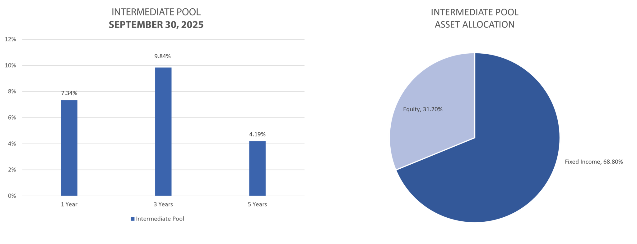 The intermediate-term pool is designed to balance mild liquidity needs with a reasonable level of expected appreciation over full market cycles (low risk and small return). This pool is designed with a time-horizon between three and seven years.