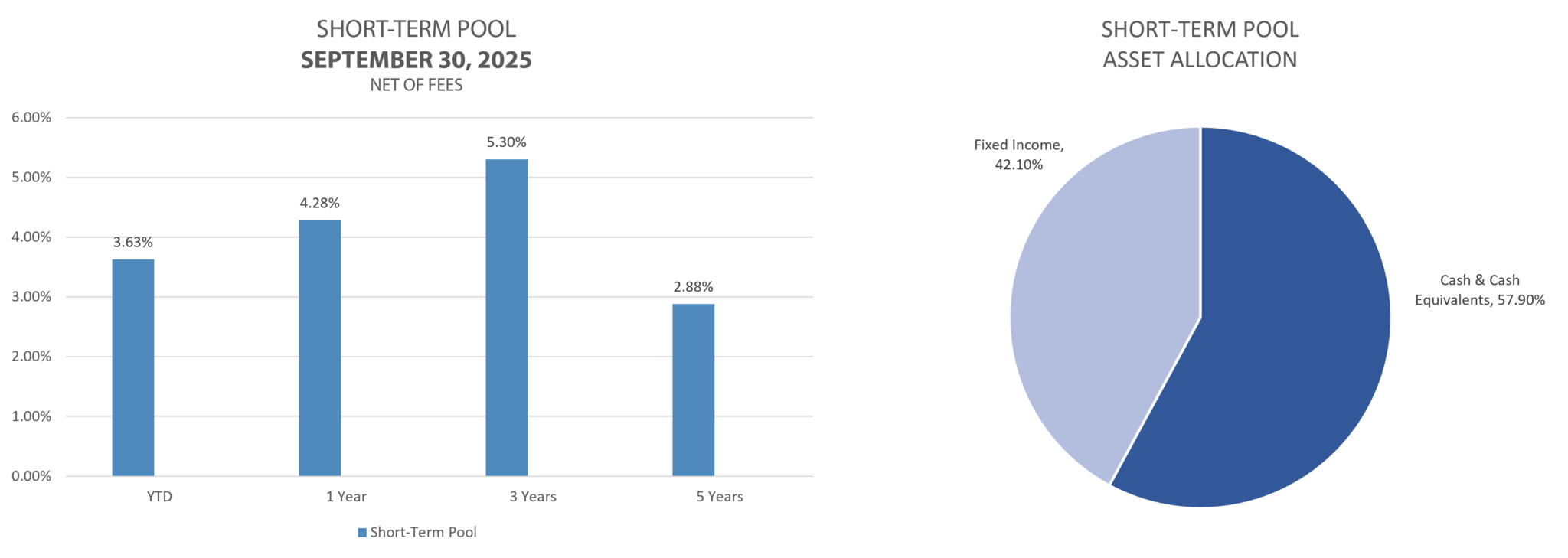 The short-term pool is designed to provide a high level of liquidity for funds with short-term grantmaking strategies. This pool is for funds with a time-horizon of less than three years.